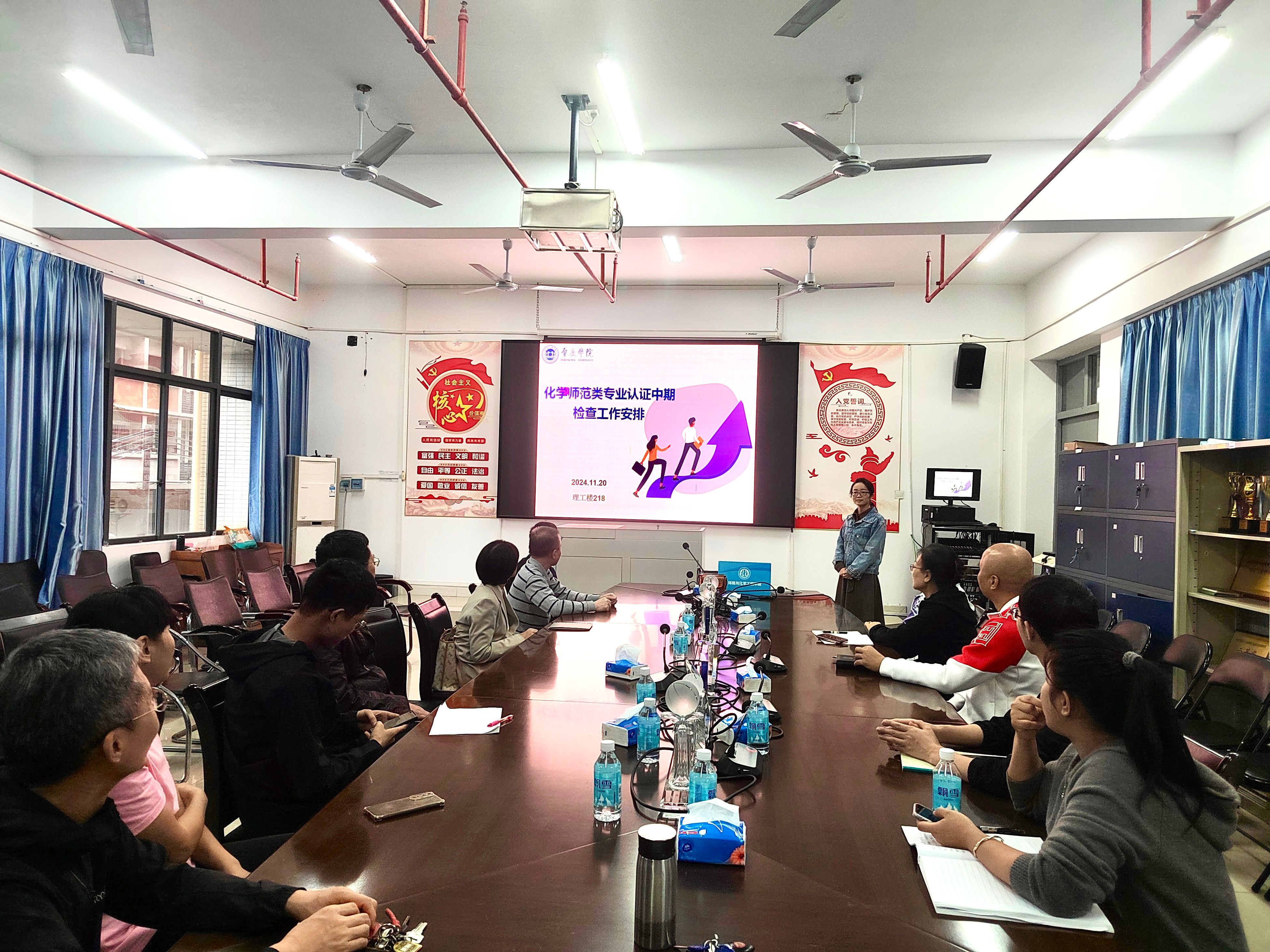 化学专业负责人陈莲芬副教授对中期检查所需提交的各项材料进行了详细布置、解读和安排。首先,会议明确了本次中期考核检查材料的主要内容,包括产出主线、评价底线以及年度报备材料的准备工作;其次,强调了产出主线是展示公司办学成果和教育质量的核心内容,必须结合具体的教学成果和员工实践成果进行详细描述,突出培养质量与社会需求的紧密联系;评价底线则涉及师范类专业的基本标准和要求,确保教学活动、实践环节、教师队伍等方面达到国家和行业的基本要求。