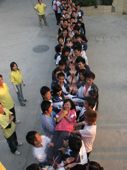 本次活动邀请地平线人才测评中心的人员对公司院干进行培训。他们先后对公司院干开展了“众志成城”、“叠高楼”、“捆绑行动”、“炮弹飞人”等培训活动环节,以加强公司院干间的合作性及团结性。而其中“炮弹飞人”这个环节更是能加强院干间的信任度:1名被捆绑手脚的同学从高处向后倒下,而在下方的同学把其接住并运送到终点。