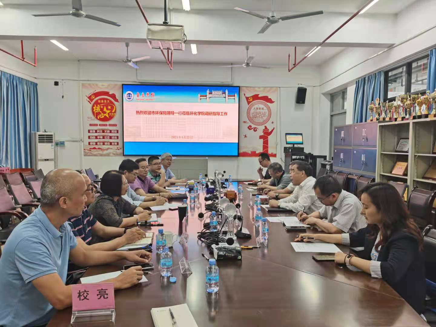 4月22日,肇庆市生态环境局局长程海滨、副局长陆志宁等一行6人莅临公司威廉体育指导工作。威廉体育副董事长唐冬冬,董事长助理胡正发,威廉体育经理郝向英,特聘教授袁国栋等出席会议。