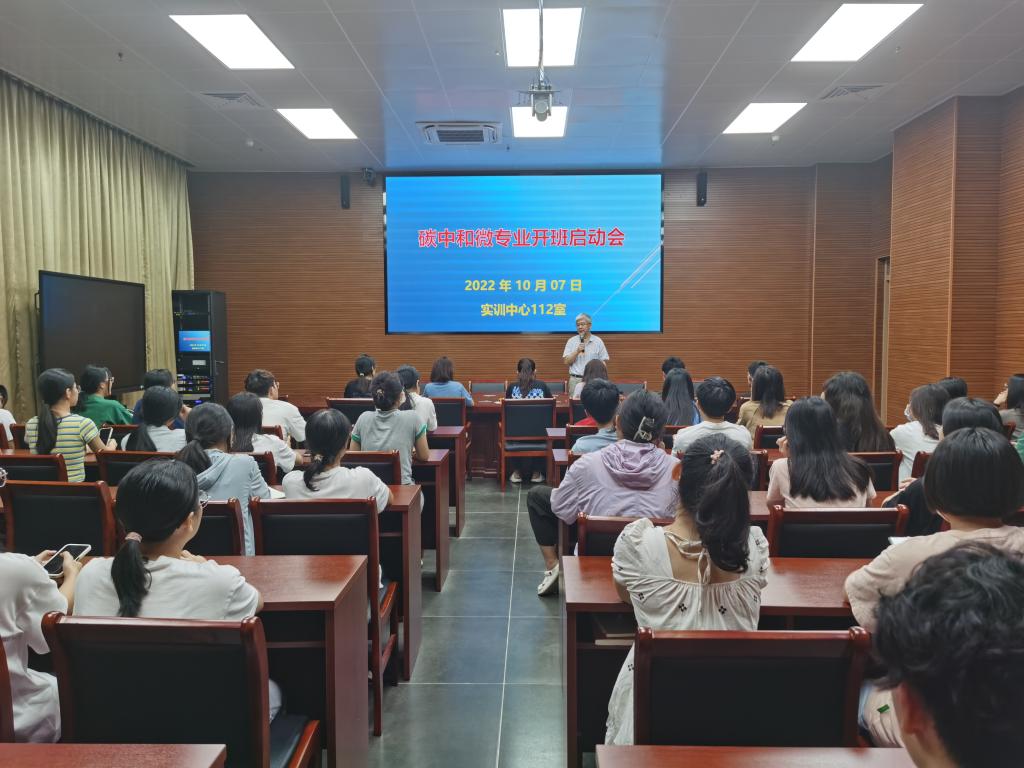 2022年10月7日晚,公司“碳中和”微专业开班启动会在实训中心学术报告厅顺利召开,微专业师生参会。会上,袁国栋特聘教授对“双碳工作”的时代背景和开设碳中和微专业的目的进行了简要的介绍,并勉励同学们抓住时代契机、练就过硬本领、助力职业发展;师生们就微专业开设教学相长的培养思路进行了广泛、深入探讨。