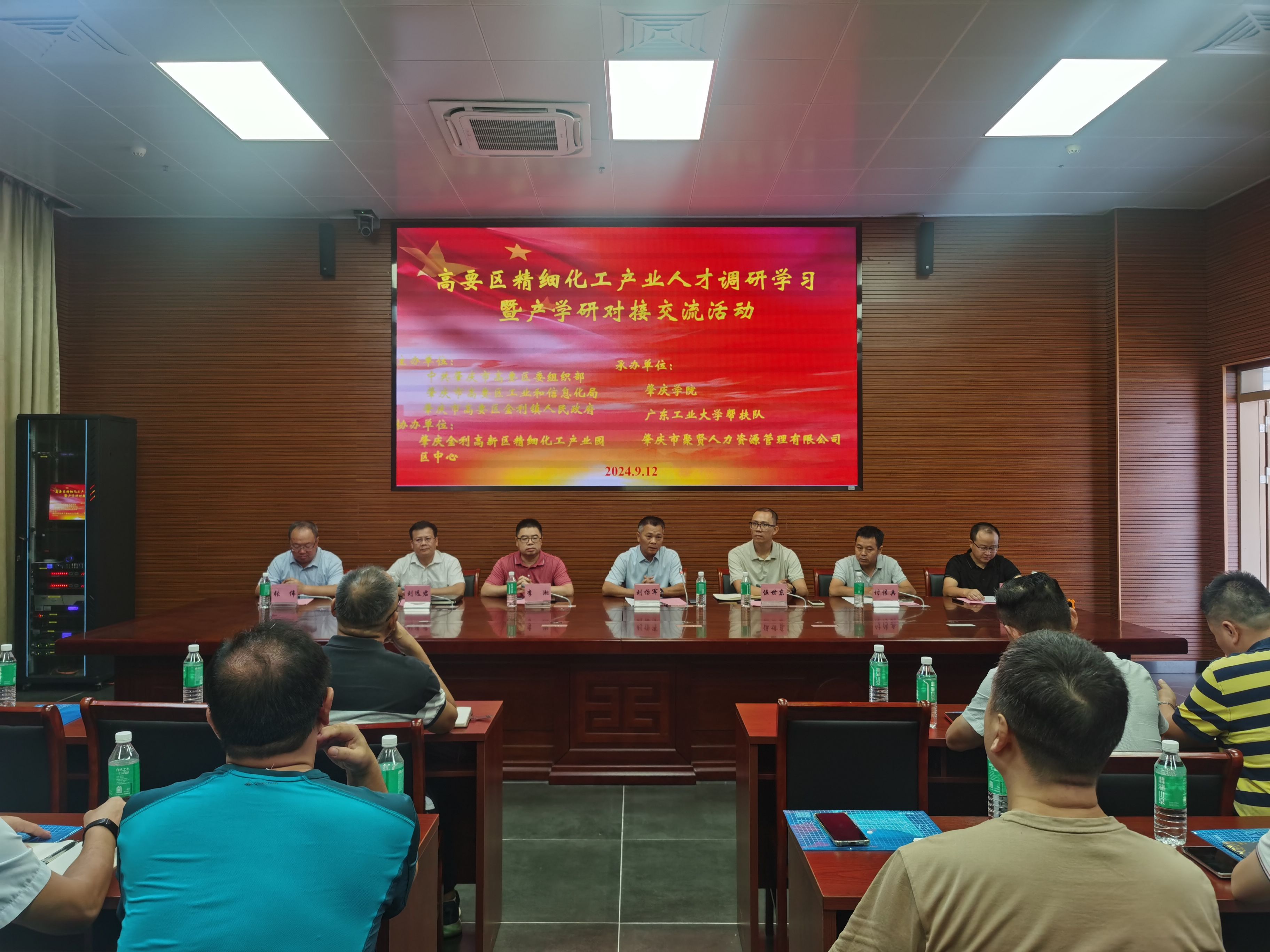 近日,公司威廉体育与肇庆市高要区委人才工作领导小组办公室联合举办了高要区精细化工产业人才调研学习暨产学研对接交流活动。广东工业大学帮扶工作队队长刘怡军,环境与化学工程公司党委书记刘远君、经理李湘,肇庆金利高新区管委会副主任伍世东、高要区工信局副局长付传兵、高要区精细化工企业代表及相关负责同志共同出席了本次活动。