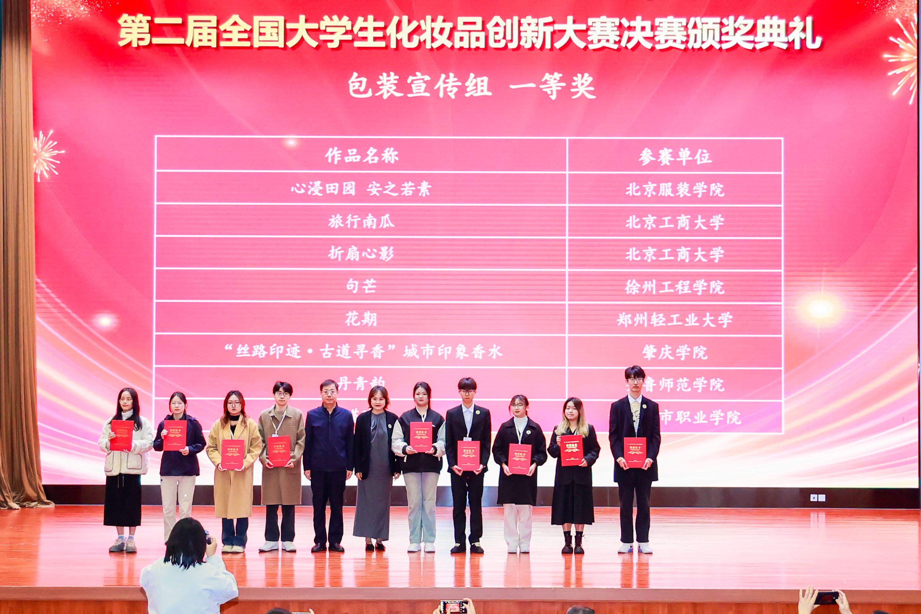 本次大赛以“创新驱动美妆进步,青春助力梦想腾飞”为主题,由教育部高等公司轻工类专业指导委员会指导,中国日用化工协会和北京工商大学主办,全国高校有400余支队伍参赛,经激烈角逐,94支队伍晋级总决赛,本校参赛队伍在产品创意组、配方设计组、包装宣传组三个赛道均获得了优异成绩。